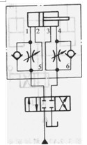 另一種接入節(jié)流閥以改變液壓缸運動速度的辦法是在液壓缸行程末端有兩個引出口,如圖3 .2-6所示,當活塞左行把口2關閉時,油通過口1經節(jié)流閥5流回油箱,從而使液壓缸減速。同樣,當右行而關閉出油口3時,節(jié)流閥6起作用而使液壓缸減速。